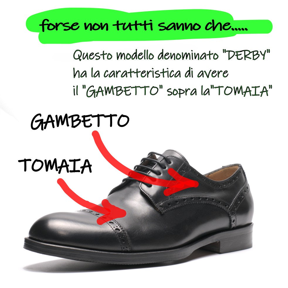 Il "DERBY" è uno dei modelli più apprezzati di calzature allacciate,. sopprattutto da coloro che avendo un piede "robusto" faticano ad allacciare correttamente la scarpa. Infatti questa classica allacciatura a differenza della "FRANCESINA" si apre facilmente sul collo del piede regolandosi in maniera automatica.
